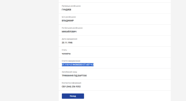 ВажливоРосійського священнослужителя служителя звинувачують у посяганні на територіальну цілісність України, а також у ведення агресивних воєнних дій або агресивної війни. (СТ.110 Ч.3 N4360203 СТ.437 Ч.2).