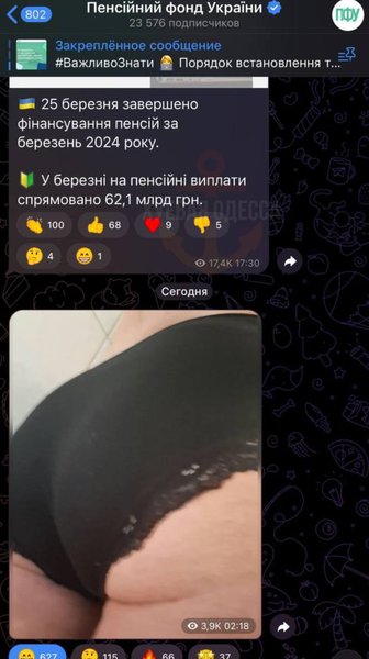 У ніч проти 28 березня офіційний телеграм-канал Пенсійного фонду України у стрічці опублікував світлину жіночих сідниць. Пікантне фото спантеличило підписників і підірвало соцмережу. Про це стало відомо завдяки поширенню відповідного скріну в українських пабліках.