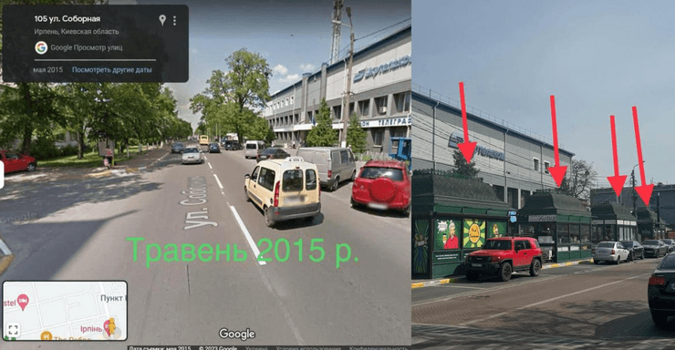 Цього ж року, розповідає Розтолопа, підлеглі Карплюка надала в оренду земельні ділянки під МАФами, захопивши пішохідну зону (рішення Ірпінської міської ради за номером 1373-12-VІІІ від 28.07.2021 року).