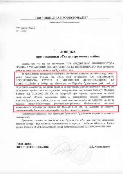 2021 рік – Дембовська реєструє право власності на МАФи, використовуючи підроблені документи, в яких вказано, що ці "об’єкти нерухомого майна" (МАФи) збудовані ТОВ "БІГУДІ" ще у 1991 році, а отже не потребують введення в експлуатацію та долучила технічні паспорти. І це при тому, що "БІГУДІ" було створено лише у 2018 році.