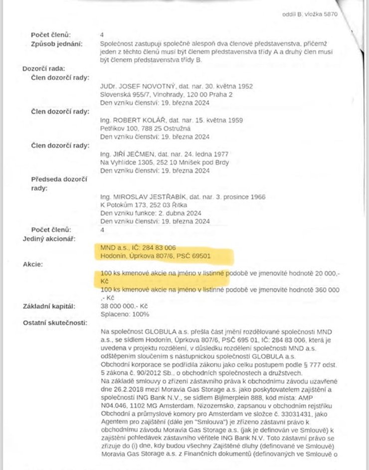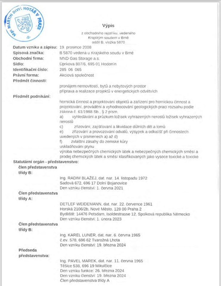 MND є наразі єдиним акціонером підземного газосховища в Дамборіце, Чехія (витяг з торгового реєстру та інші офіційні документи). Газосховище було збудоване разом з російським газовим гігантом у той час, коли весь європейський енергетичний сектор співпрацював з Газпромом. Після початку війни MND вжила всіх необхідних заходів для збереження права власності на цей актив без участі Газпрому і цього року MND стала єдиним акціонером газосховища, що підтверджується витягом з чеського реєстру та іншими офіційними документами.