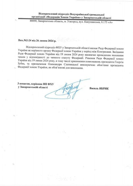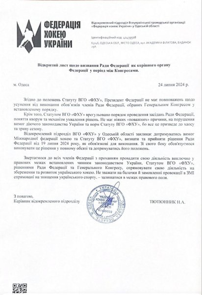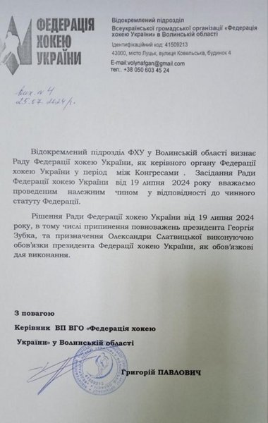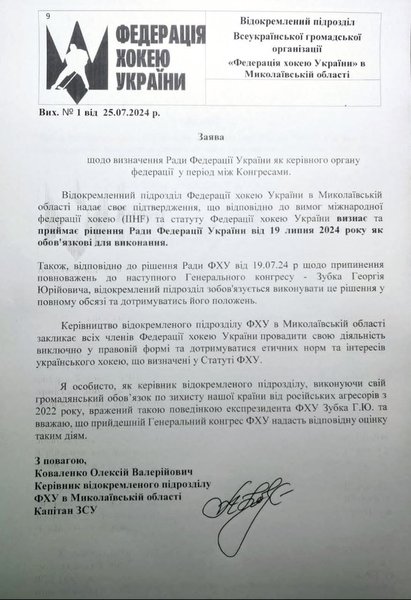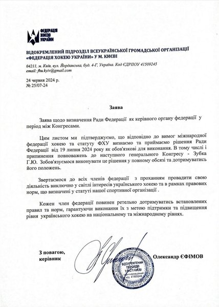 Пристрасті в хокейній спільноті тривають вже кілька тижнів. Раніше віцепрезидентка ФХУ, Олександра Слатвицька повідомляла, що члени Ради ФХУ (яка є колективним органом управління) ухвалили рішення про дострокове припинення повноважень президента федерації – Георгія Зубка. Серед причин - нецільове використання коштів, авторитарний стиль управління, низька ефективність роботи, через яку постраждала, зокрема, підготовка збірних хокейних команд України до участі в міжнародних змаганнях, розповідає видання.