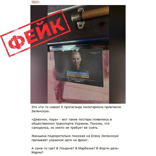 "Цей фейк має на меті дискредитувати мобілізаційну кампанію в Україні та особисто дружину президента, щоб підірвати довіру до української влади та викликати негативні настрої в суспільстві", — зазначили в ЦПД.