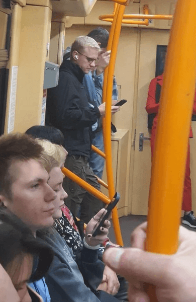 Антикорупціонера Віталія Шабуніна, який нібито числиться бойовим медиком, помітили у цивільному одязі у столичному метро. Про це пише УНІАН з посиланням на "Закон і бізнес", яке опублікувало фото Шабуніна в громадському транспорті.