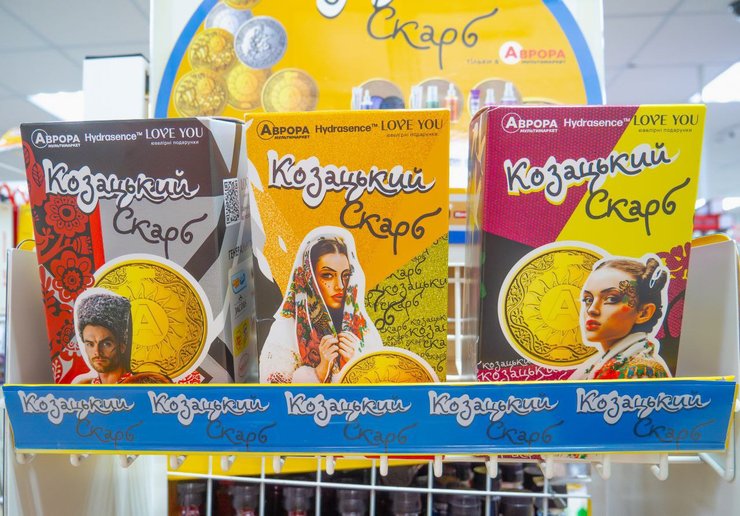 До Дня захисників та захисниць України мережа мультимаркетів "Аврора" розмістила на поличках магазинів новий продукт — подарунковий набір "Козацький скарб". У набір входять косметичні засоби від українського бренду "Hydrasence": є п’ять варіантів наповнення — три для жінок і два для чоловіків. Ознайомитися з вмістом можна на самому пакованні у магазині чи у картці товару на avrora.ua. Серед наповнення можна знайти патчі, креми для рук, термозахист чи спрей для росту волосся, сироватки для обличчя, одеколони, шампуні для волосся та бороди і багато іншого.