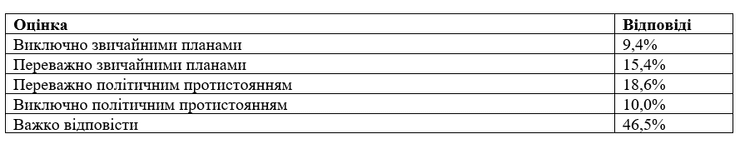 В цілому 24,8% опитаних вважають, що можливе звільнення Умєрова продиктоване політичним протистоянням, а 28,6% – що це можуть бути звичайні кадрові рішення. 46,5% респондентів не визначились з відповіддю.