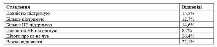 На запитання "Як Ви ставитесь до чуток про можливе звільнення з посади Умєрова?" 23,3% опитаних в цілому відповіли, що не підтримали б таке рішення, а 28,2% – що підтримали б. Не чули про це 26,4%, не визначились з відповіддю 22,1%.
