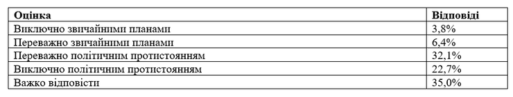 Відповіді на запитання "Можливе звільнення Рустема Умєрова продиктоване звичайними плановими змінами керівництва чи політичним протистоянням?" розподілились так: