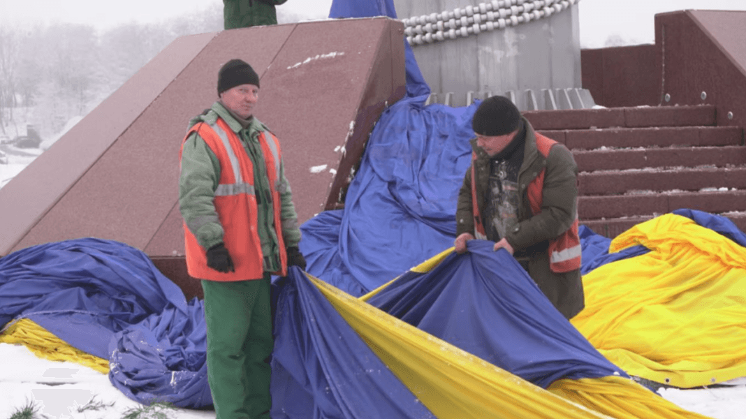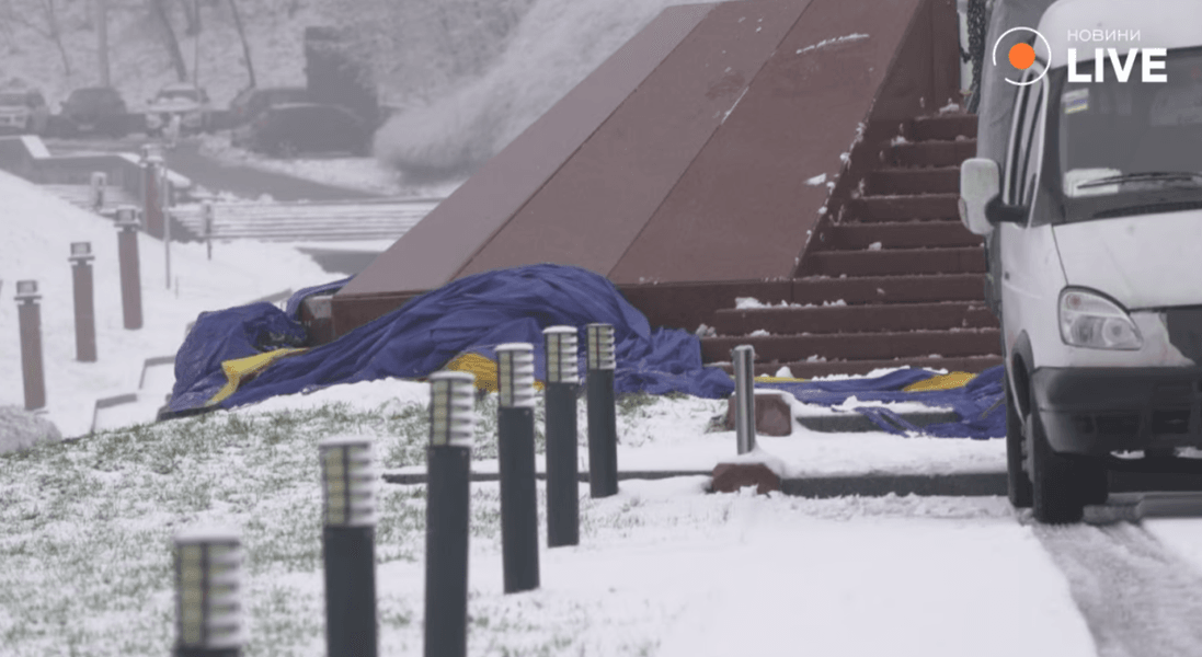 "Прапор пошкоджено через несприятливі погодні умови. Завершити роботи щодо заміни полотнища планують до кінця 11 грудня", — додали в КМДА.