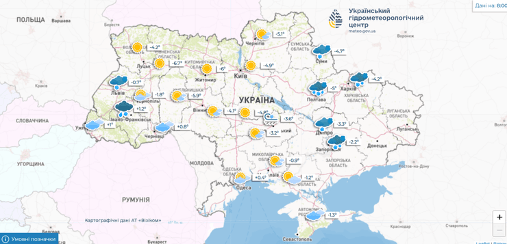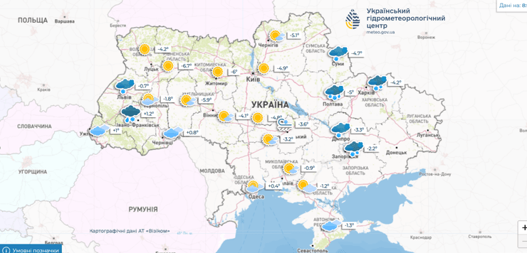 "Нічна температура буде −3…−9, у Карпатах навіть −9…−14 може бути. У денні години також мороз, але помірний — 0…-6. Південна частина і західні області — дещо тепліше: вдень від -3 до +3", — розповіла Наталія Птуха.