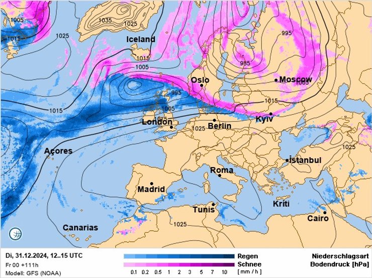 31 грудня передбачається невелике зниження температури повітря і на півночі України, включно з Києвом, та на північному сході є ймовірність опадів у вигляді хоча б мокрого снігу.