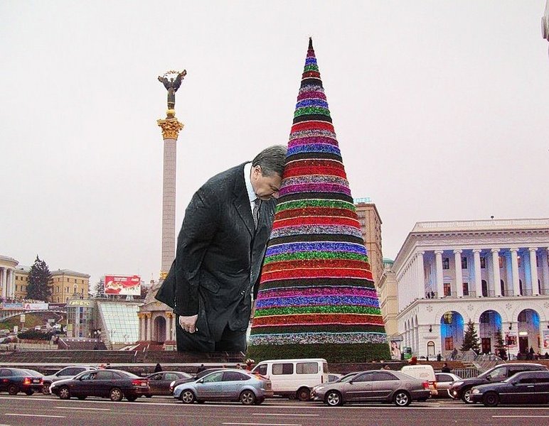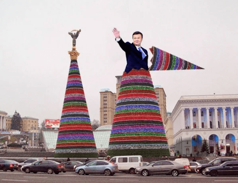 Українці порівнювали головну ялинку з ракетою, дитячою пірамідкою, ріжком морозива тощо. Також до неї фотошопили й тодішнього президента Януковича.