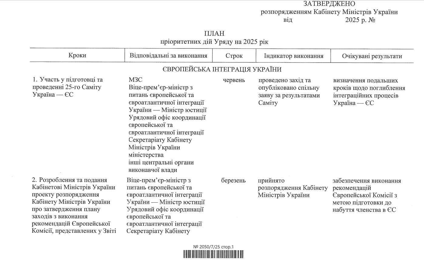 план уряду, план уряду на 2025 рік, план Кабінету міністрів України, план Кабміну на 2025 рік
