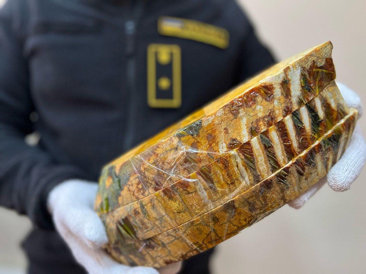 У відомстві розповіли, що під час контролю міжнародних поштових відправлень митники в одній із посилок виявили 6 важких декоративних пластин незрозумілого походження. Посилка їхала з Полтавської області до Сполучених Штатів Америки. Знахідка була відразу відправлена на експертизу.