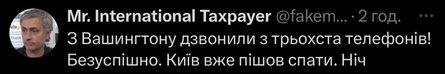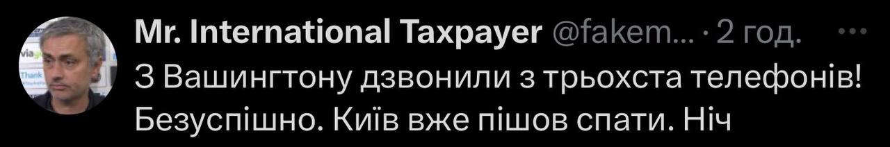 А інший користувач Х пожартував, що з Вашингтона вже подзвонили з трьохста телефонів, але "Київ вже пішов спати".