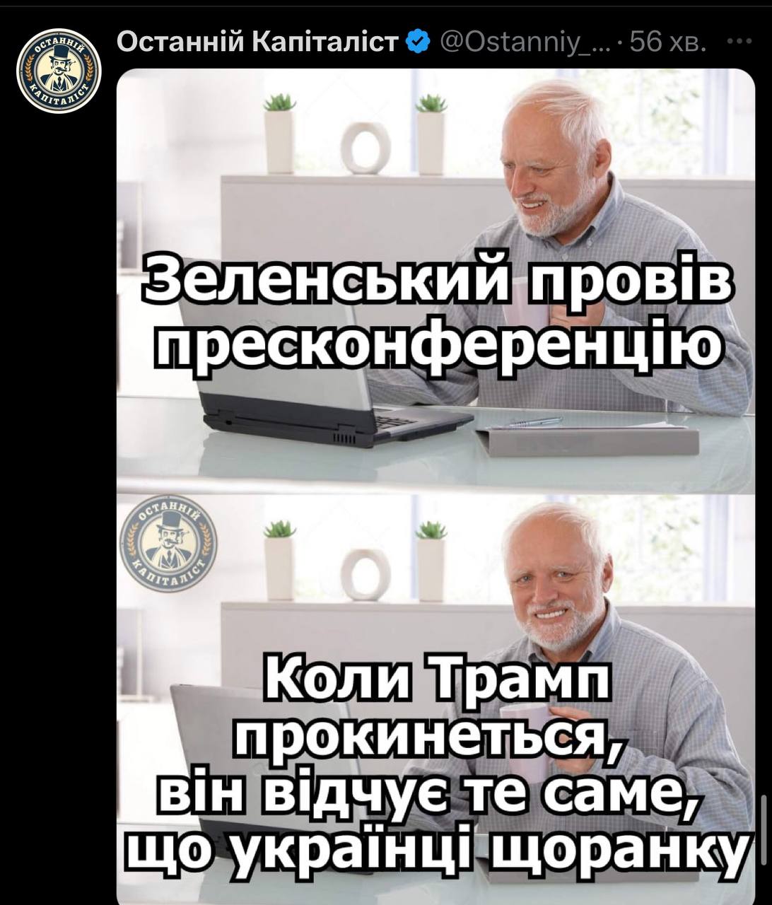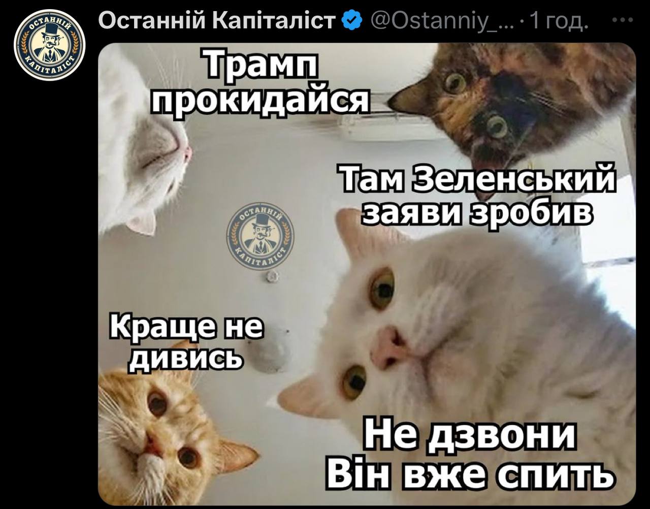 "Трамп, прокидайся. Там Зеленський заяви зробив. Краще не дивись. Не дзвони, він вже спить", — пишуть українці.