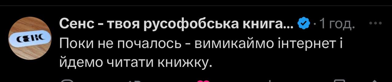 Тим часом книгарня "Сенс" порадила українцям йти читати книжку, поки у США не настав ранок і вони не відреагували на заяви Зеленського.
