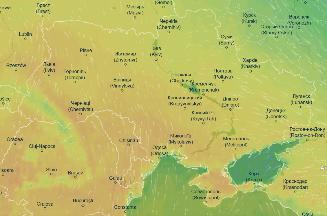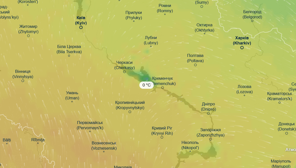 Але у Полтавській області Ventusky фіксує пляму "погодної аномалії", де температура повітря, згідно з даними сервісу, складе від 0 до +5.