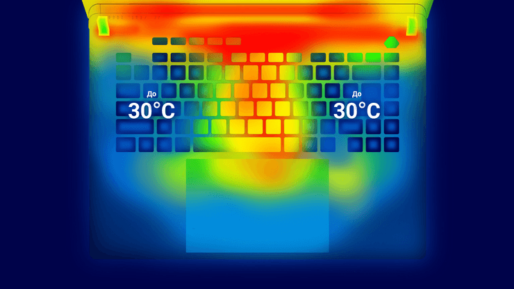Вентиляційний отвір біля клавіатури утримує температуру в зоні клавіш нижче 30°C, підвищуючи комфорт під час тривалих ігрових сеансів.