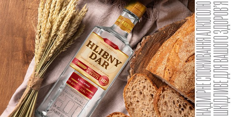 Свіжий аромат теплого хліба з хрусткою запашною скоринкою нагадує про безкрайні пшеничні поля, золоте колосся, стигле зерно та гаряче сонце українських степів. Велика і щира українська душа втілена в унікальній зерновій горілці HLIBNY DAR, що народжується з кришталево чистої артезіанської води заповідних черкаських земель, спирту класу "Люкс" та кращих ароматних спиртів пшениці, жита та ячменю. HLIBNY DAR – це сила, внутрішня міць, надійність, опора та достоїнство. Це торгова марка, що символізує і підтримує вічні цінності: сім’ю, друзів, родинне коріння, вірність народним традиціям. Сьогодні HLIBNY DAR – одна з кращих зернових горілок в Україні і входить в ТОП-7 найбільш продаваних горілчаних брендів світу за версіями авторитетних міжнародних видань Drinks International та The Spirits Business.