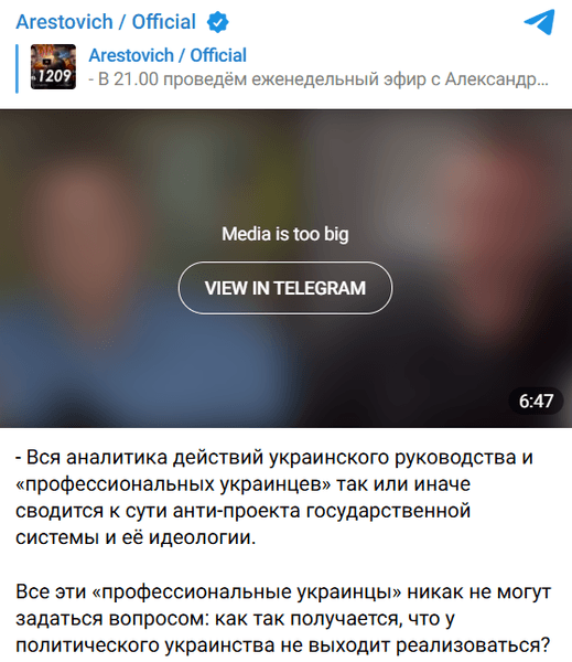 Політичне українство, як зазначає Арестович, робить ставку на смерть і не продукує доданої вартості ні для світу, ні для своїх. Арестович переконаний, що майбутнього в такого антипроекту немає.