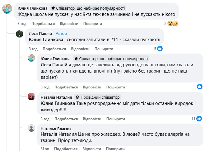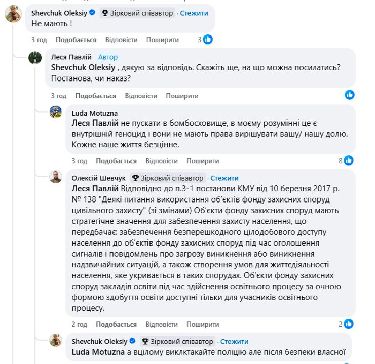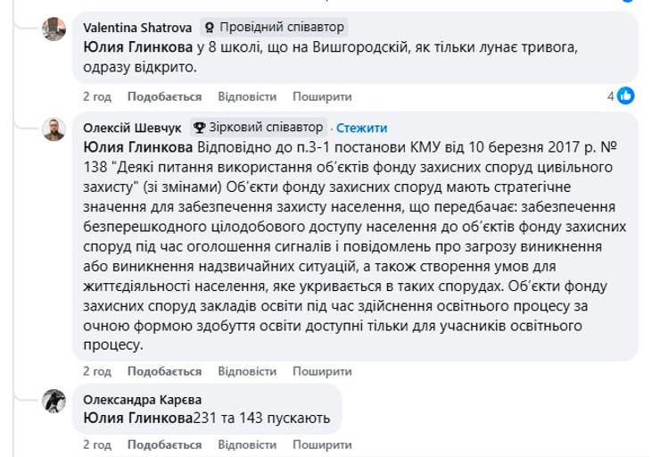 В коментарях повідомили, що рішення "пускати, чи не пускати" до шкільних укриттів залежить від керівництва закладу.