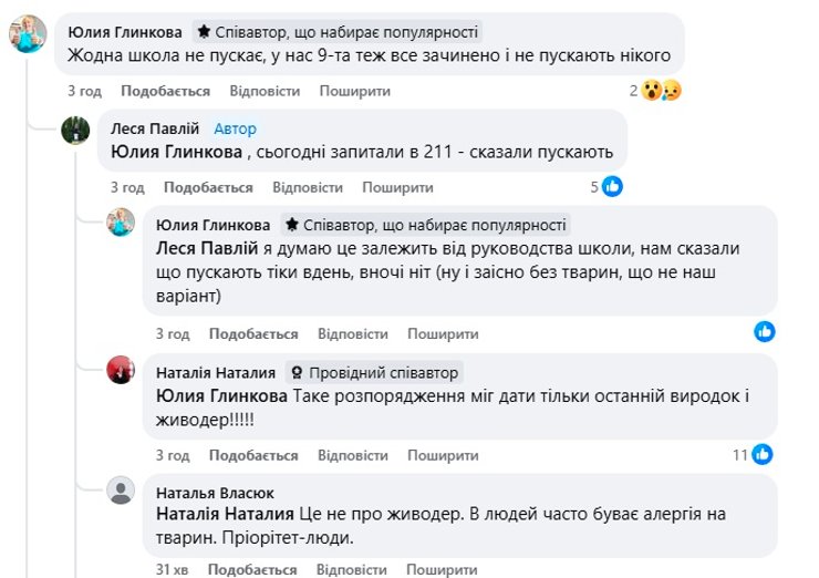 В деякі школи пускають, але без домашніх тварин, в деякі — навіть з котами та собаками.