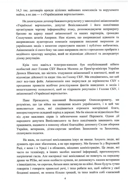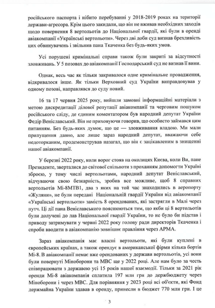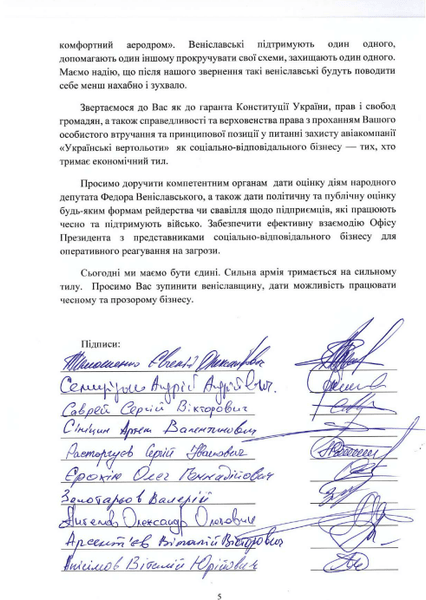 Лист-звернення до президента виник як реакція на заяви нардепа Федора Веніславського в медіа щодо співпраці "Українських вертольотів" з росіянами.