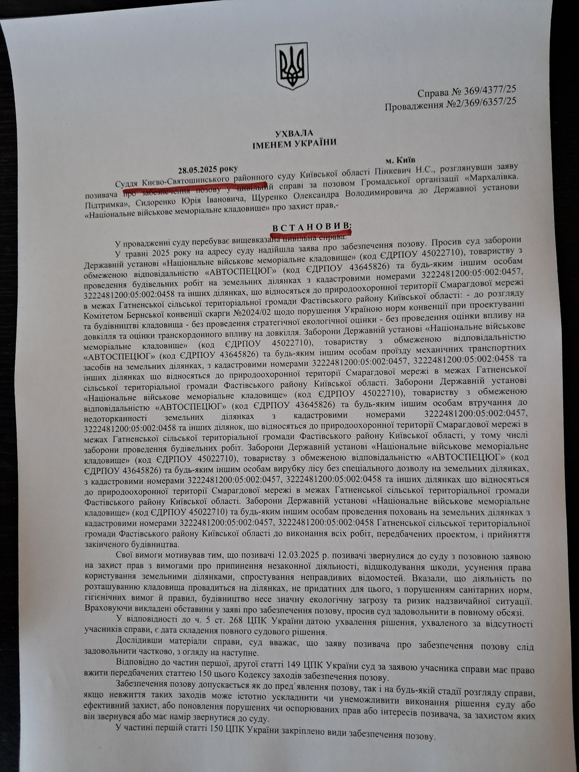 Суд заборонив поховання в Мархалівському лісі до завершення будівництва