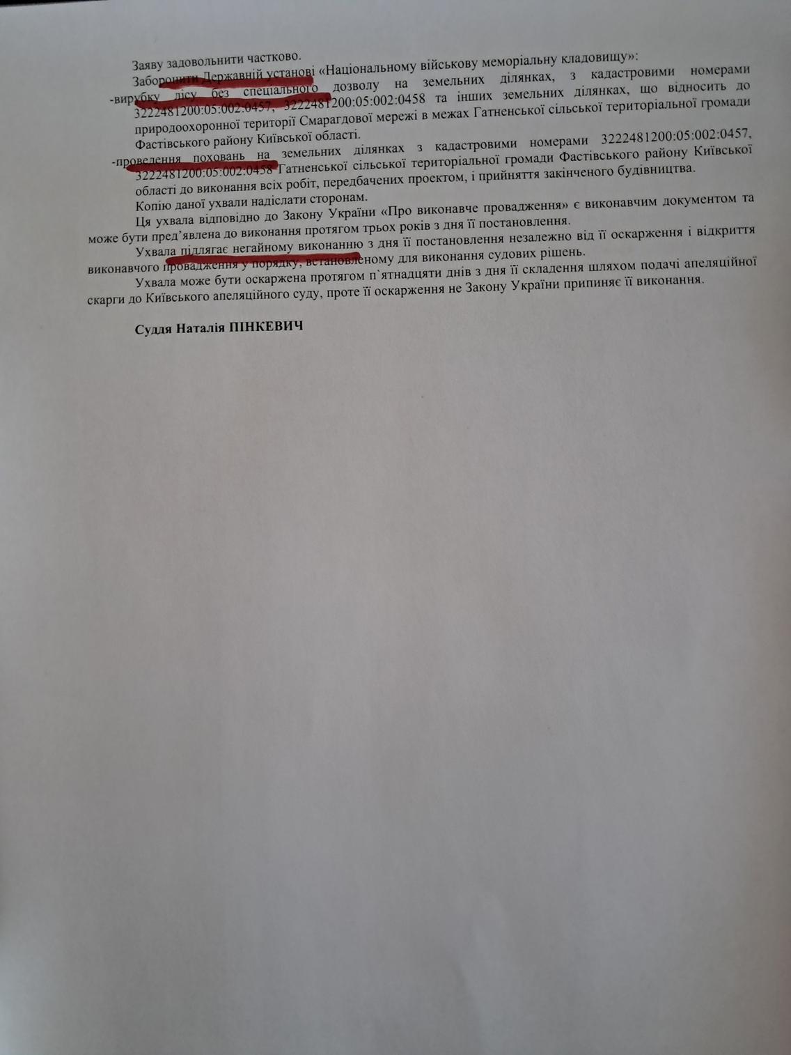 Поховання в Мархалівському лісі заборонено судом