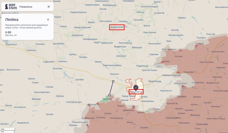 Обстановка в районі Покровсько-Мирноградскої агломерації близька до критичної. Окупанти одночасно просуваються до трас на Павлоград та Добропілля. Бої також тривають на околицях Новоекономічного, за 12 кілометрів до Покровська.