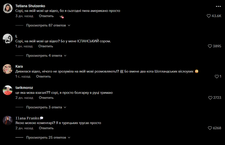 Зазначимо, що на акаунті тіктокера, який проводив опитування, відео зібрало 1,2 млн переглядів, а на жартівливій публікації з коментарями, яку створила Світлана Ровенчак - 3.1 млн переглядів.