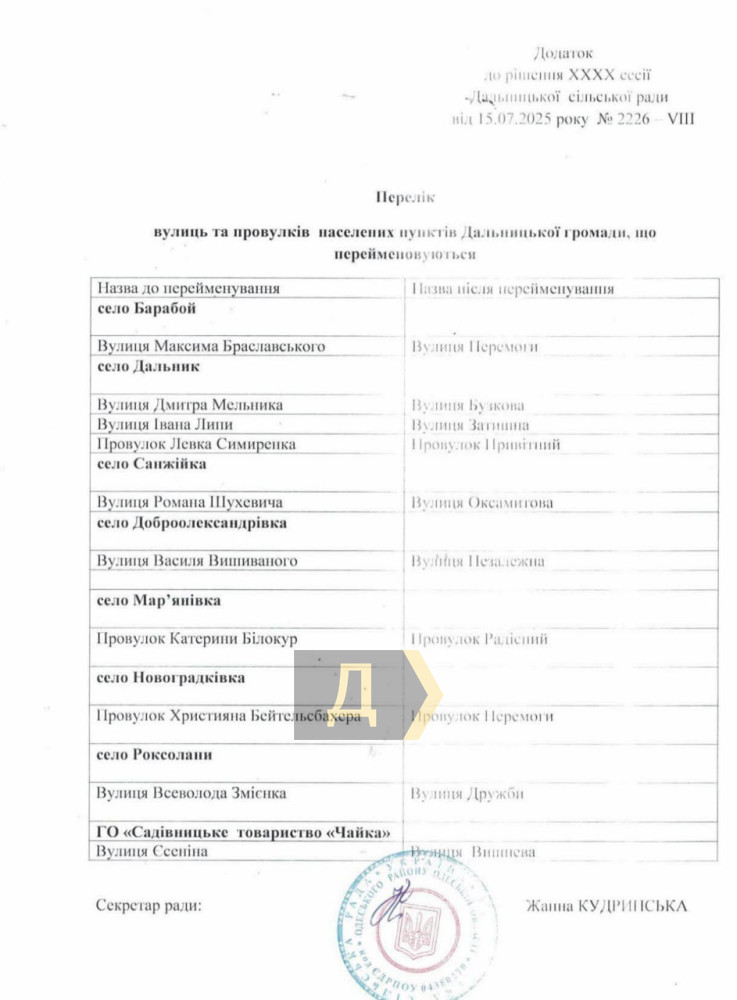 У низці населених пунктів Одеської області перейменували вулиці, нещодавно названі на честь українських героїв.