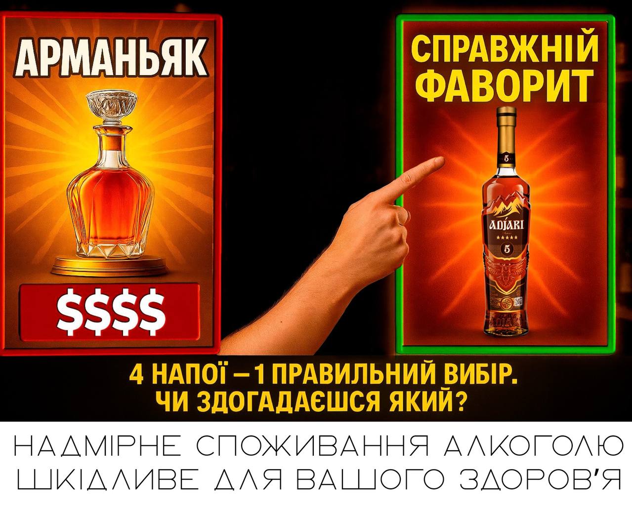 Смак — справа індивідуальна. Але якщо вам хочеться справді насолодитись благородним напоєм — український бренд Adjari стане чудовим вибором: класична рецептура, дубові бочки, справжній коньячний спирт, приємний післясмак і прозора ціна.
