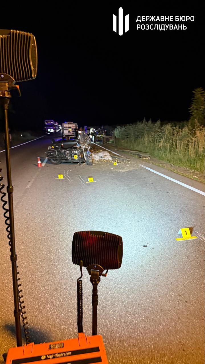 Одразу після отримання інформації про ДТП на місце виїхала слідчо-оперативна група ДБР, яка працювала всю ніч, оглядаючи місце події та фіксуючи сліди, опитуючи очевидців, а також збираючи записи з камер відеоспостереження.