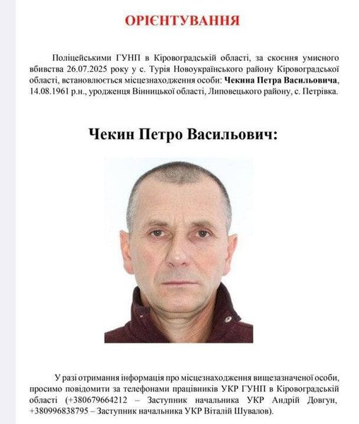 Поліція регіону полювала на нього після того, як 26 липня він разом зі спільником увірвалися до будинку пенсіонерів на Черкащині, яких закатували до смерті. Слідчі припускають, що мотивом злочину стала корисливість.