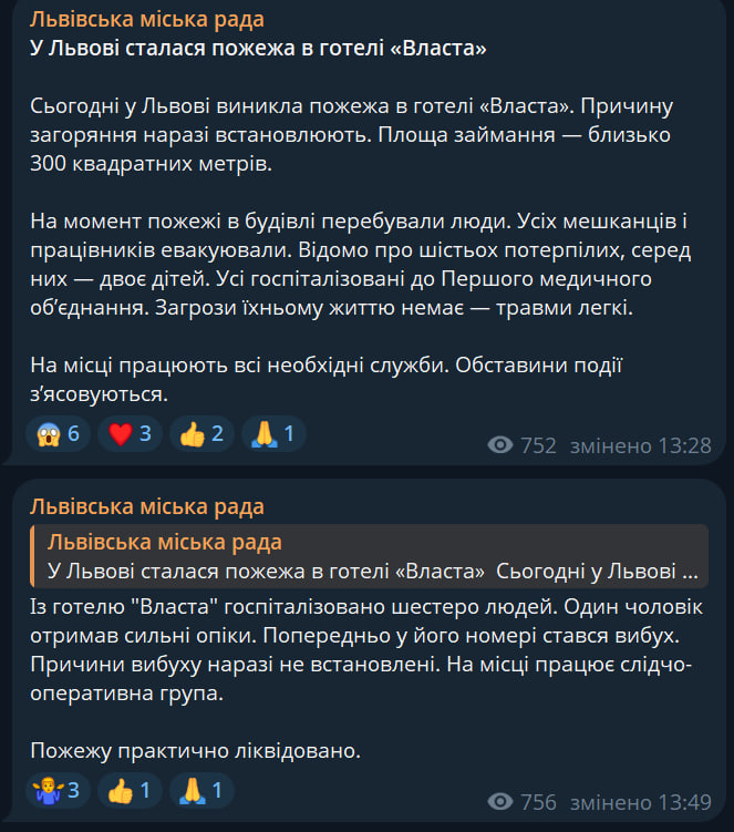 У Telegram-каналах повідомлялося, що перед загорянням у готелі міг статися вибух. На місце події одразу прибули рятувальники, які почали евакуацію та гасіння пожежі.