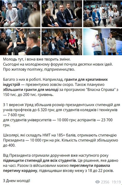 З 1 вересня буде збільшено розмір президентських стипендій для учнів профтехучилищ, а також планують заохочувати школярів за високі результати національного мультипредметного тесту (НМТ).