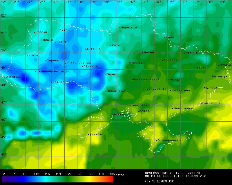 Щодо температури повітря, то вночі вона становитиме в середньому +8 +12 градусів. На півдні та сході буде дещо тепліше — від +12 до +16.