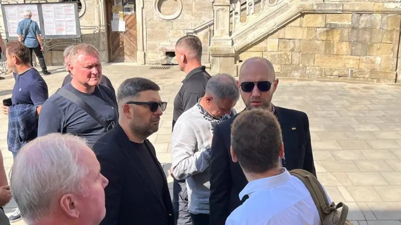 На службу в Соборі святого Юра у Львові приїхали його рідні, друзі, колеги та соратники з партії. Також прибули спікер та віцеспікер Верховної Ради Руслан Стефанчук та Олександр Корнієнко.