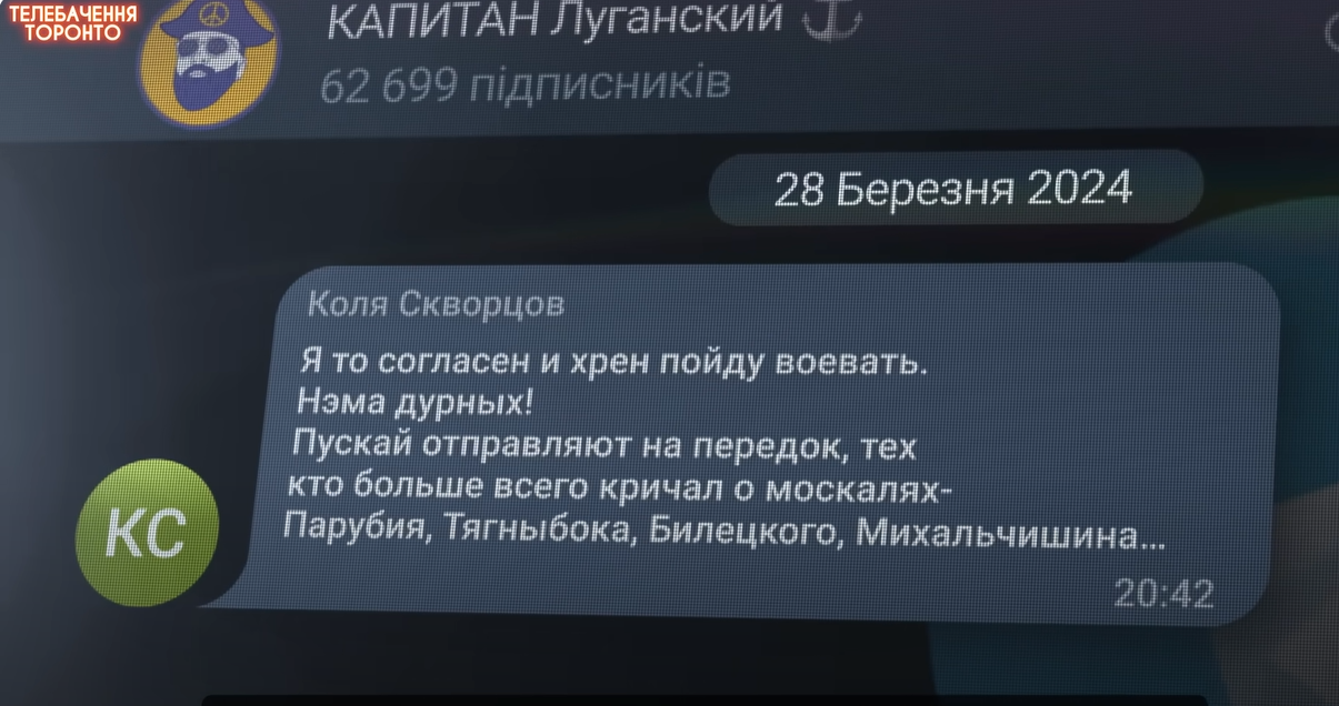 Окрім того, Сцельніков активно намагався вийти на зв'язок з росіянами, стверджується у розслідуванні. Скажімо, він намагався зв'язатися з автором каналу, у якому збирають гроші російській армії.