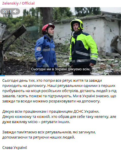 "Сьогодні день тих, хто попри все рятує життя та завжди приходить на допомогу. Ми завжди можемо розраховувати на ДСНС", — сказав глава держави.