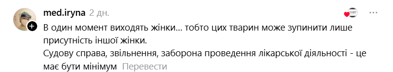 "Чоловік зізнається, що брав участь у сексуальному насильстві над жінкою без свідомості, яка була підготовлена до операції", — констатують у спільноті.
