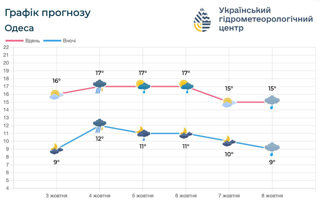 За даними Гідрометеорологічного центру Чорного та Азовського морів, найближчими днями на Одещині та вздовж морського узбережжя очікується нестійка та волога погода під впливом атмосферних фронтів із півдня. Пройдуть дощі, а 4 жовтня місцями можливі значні опади.