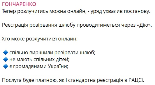 Народний депутат від "Європейської солідарності" Олексій Гончаренко уточнив, що для розлучення через додаток потрібно три речі:
