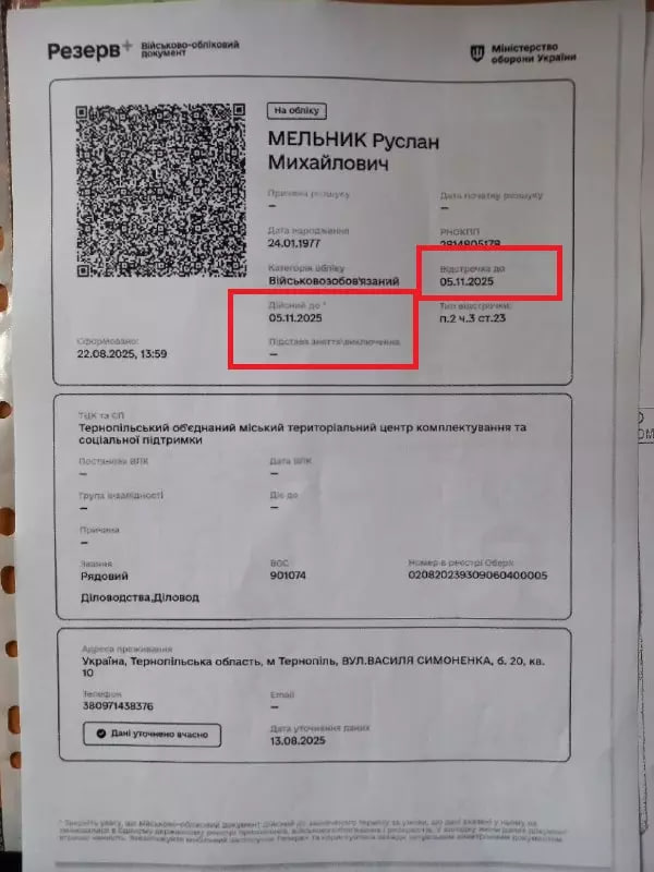 У виданні "20 хвилин" повідомили, що мають усі підтверджувальні документи: наказ про працевлаштування, копію з "Резерв+", де зазначено відстрочку до 5 листопада, а також офіційний витяг із ТЦК, який свідчить, що чоловіка вже мобілізовано.