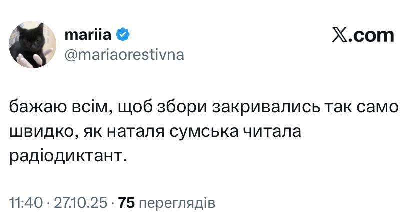 Один із користувачів підсумував атмосферу події фразою, яка швидко розійшлася мережею: "Бажаю всім, щоб збори закривалися так само швидко, як Наталія Сумська читала радіодиктант".