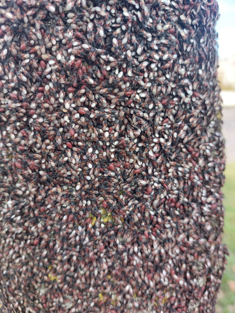 "Гугл пише, що це липовий клоп (Oxycarenus lavaterae). Стовбур липи від землі до крони в них. Схоже на якийсь фільм жахів", — йдеться в описі.