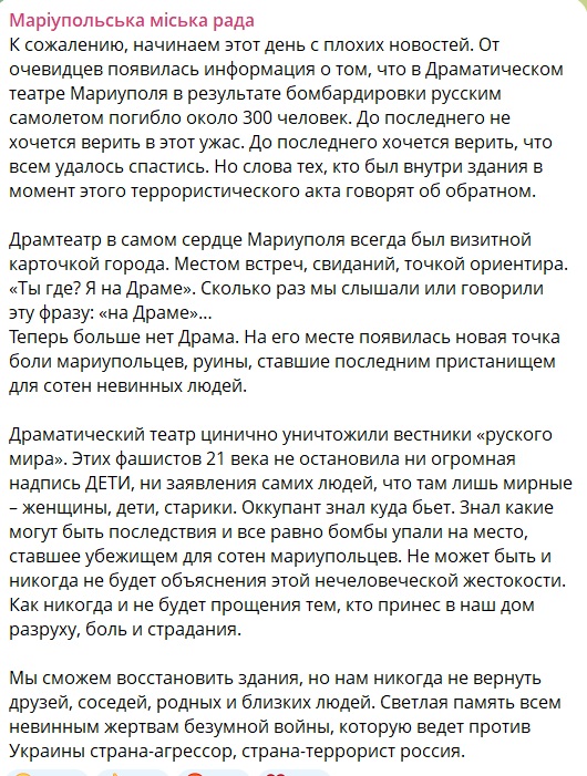 Драмтеатр у Маріуполі — місце найбільшого військового злочину ЗС РФ