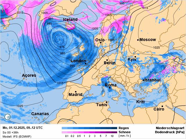 1 грудня дощі проллються у південних та центральних областях, а також у Карпатах, на Закарпатті та Прикарпатті. Стовпчики термометрів фіксуватимуть від +4 до +7 градусів, тепліше буде лише на півдні — від +8 до +12.